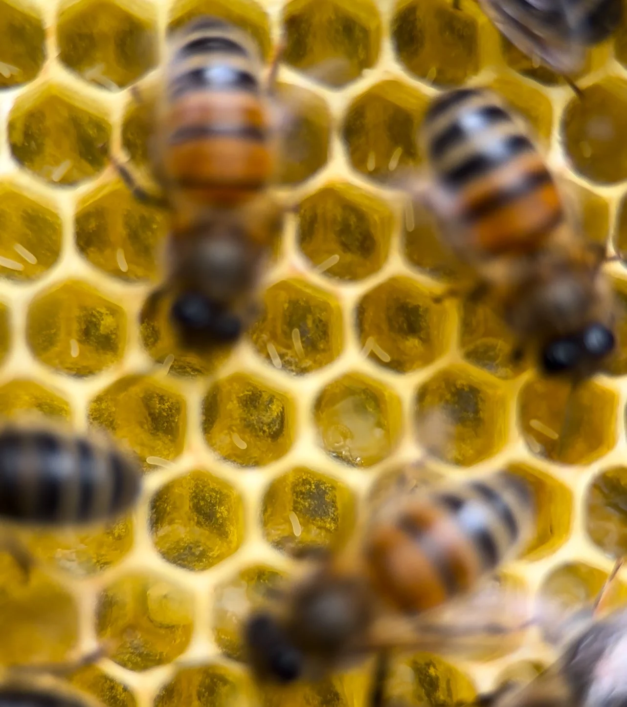 Phoenix survived the winter and once the weather had warmed up she began to increase her egg laying. But she started 2024 with an issue. She, for what ever reason was laying multiple eggs in a single cell. Which is a sign that she is failing as a productive queen.